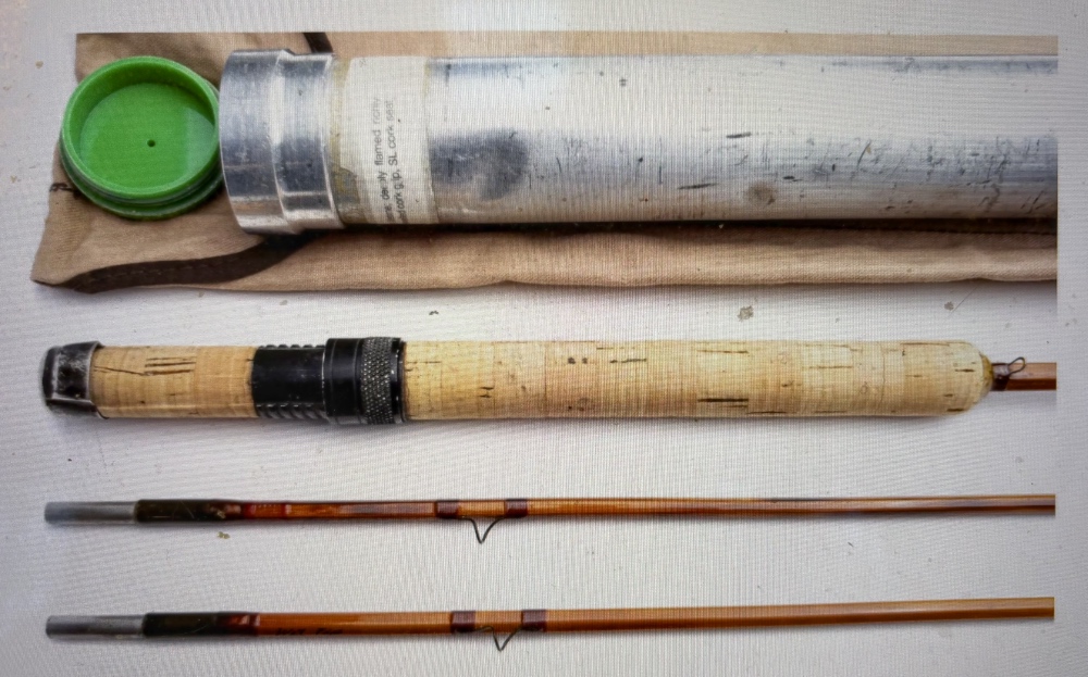 WANIGAS SUPREME FLY ROD, PHY “MIDGE” BLANK, 6’2″ 2/2: Reported by Bill McRoy to be an “early” build by Art Neumann. The name of the original owner is written on the rod shaft. Original bag and aluminum tube with brass collar. Offered by Bill McRoy in his Spring 2023 tackle sales flyer for $1950.