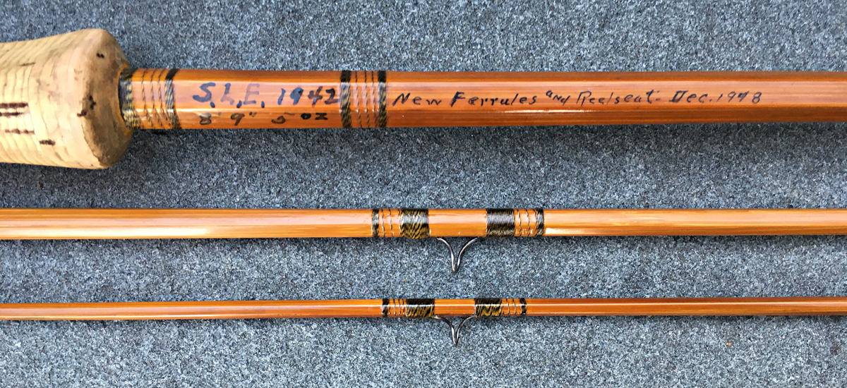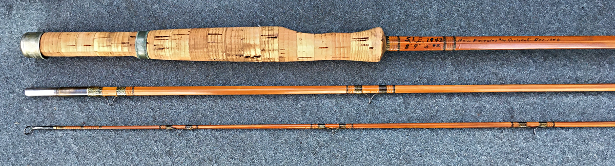 PARA 18 PERSONALLY OWNED BY PAUL H. YOUNG, 9’6″, 2″ ext. butt, 2/2, 6.39 oz., circa 1951: Flamed cane, Super-Z ferrules, “…was one of Paul’s personal rods and came directly from the Young family…” MJK catalog no. 52 (1989).